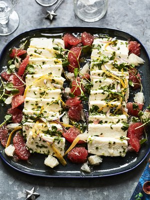 Yrttimarinoitu paneer-juusto kruunaa brunssipöydän