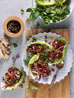 Kikkoman Soijaglaseeratut kanaburgerit ja bataattilohkot ponzudipillä - näin tuunaat tutut herkut aasialaisilla mauilla Mainos