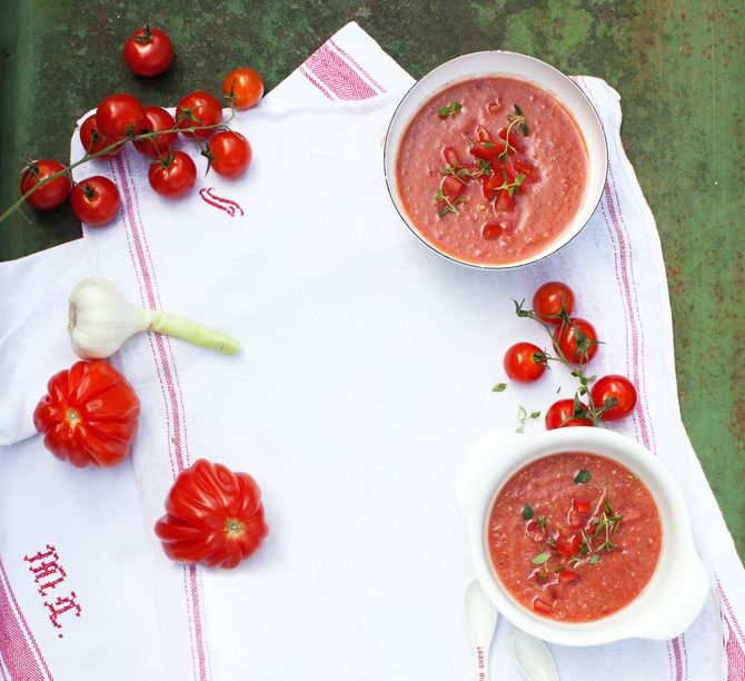 Espanjalainen kylmä keittoklassikko maistuu kuumanakin päivänä. Jos hikikarpalot eivät vielä säästä kirvoitu, lisää Tabascon määrää.