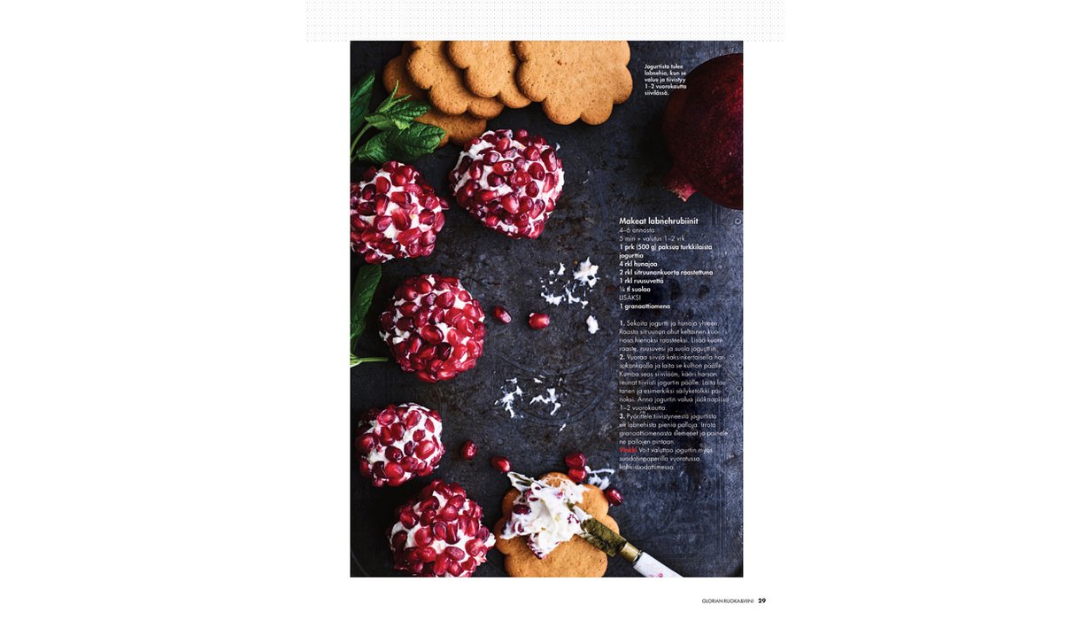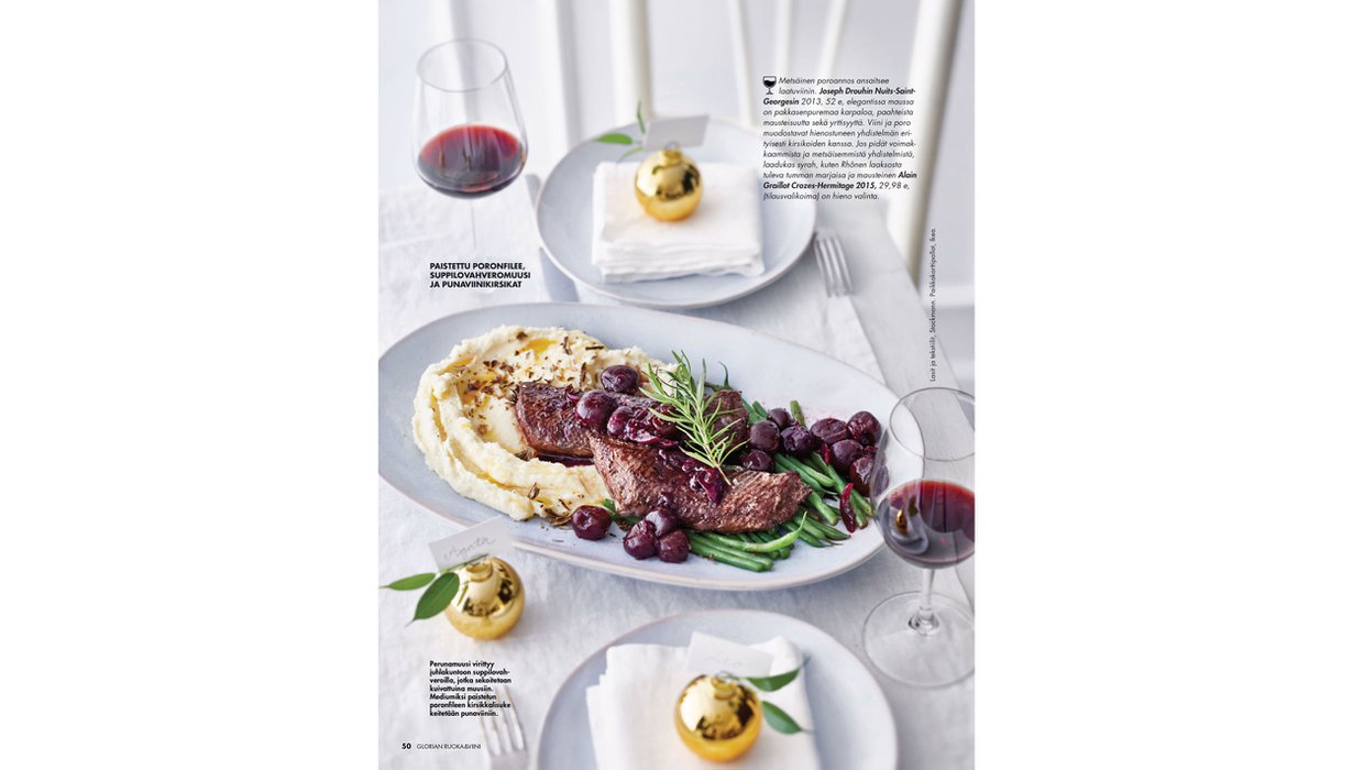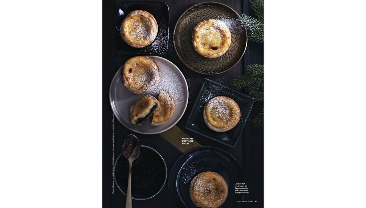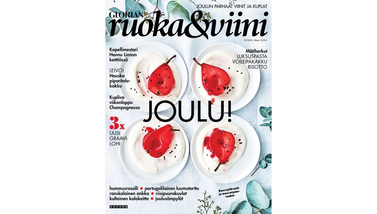 Salaattipizzaa ja kukkakaalipoppareita pikkujouluihin, savulohi-mätipastaa ja poronfileetä joulupöytään? Glorian ruoka & viinin joululehden ohjeilla kokkaat hymyn huulille sekä itsellesi että vieraille, ja löydät ruuille parhaat viiniparit. Jauhopeukalo ilahtuu kinuskisen piparitalokakun ja dipattavan maustekakun resepteistä, ja riemastuu ohjeesta, jossa joulutorttu ja lissabonilainen leivos kohtaavat. Löydät lehdestä myös vinkit keittiöihmisen joululahjoihin. Huikea lehti on kaupoissa 22.11.