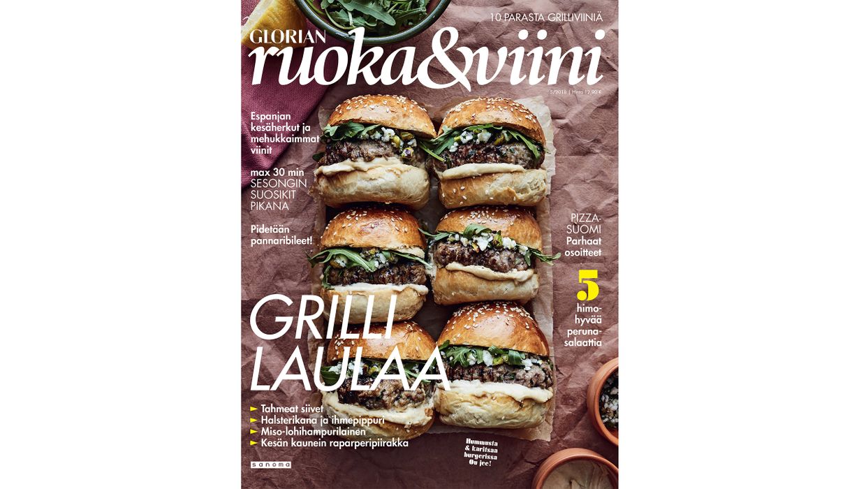 Kesän herkullisin lehti on tässä! Uudesta Glorian ruoka & viini -lehdestä löydät parhaat kesäruuat, joissa on paljon makua, mutta vain vähän vaivaa. Lehti laittaa grillin laulamaan. Lisäksi löydät päivitetyn version kesäkeitosta, kesän kauneimman raparperipiirakan sekä viinivinkit grillaukseen. Uudessa juttusarjassa Meri-Tuuli Väntsi kokkaa yhdestä raaka-aineesta kaksi suosikkiruokaansa. Lehti on kaupoissa tänään 24.5.