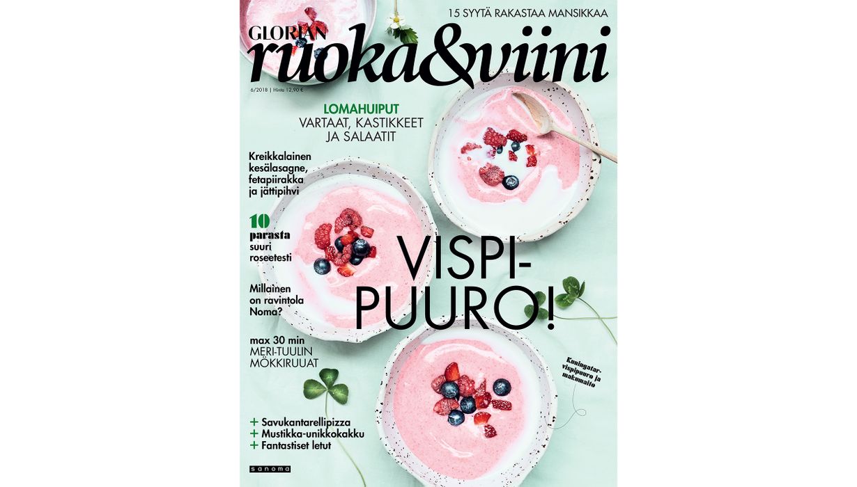 Glorian ruoka&viinin heinäkuun numerossa: Suuri roseetesti, pikavisiitti uudessa ravintola Nomassa ja Pipsa Hurmerinnan laventelipullan salaisuus. Vispipuuroa, lettuja, grillattua kalaa ja muita lomakauden helppoja herkkuja unohtamatta. Uusin lehti on kaupoissa tänään 28.6.
