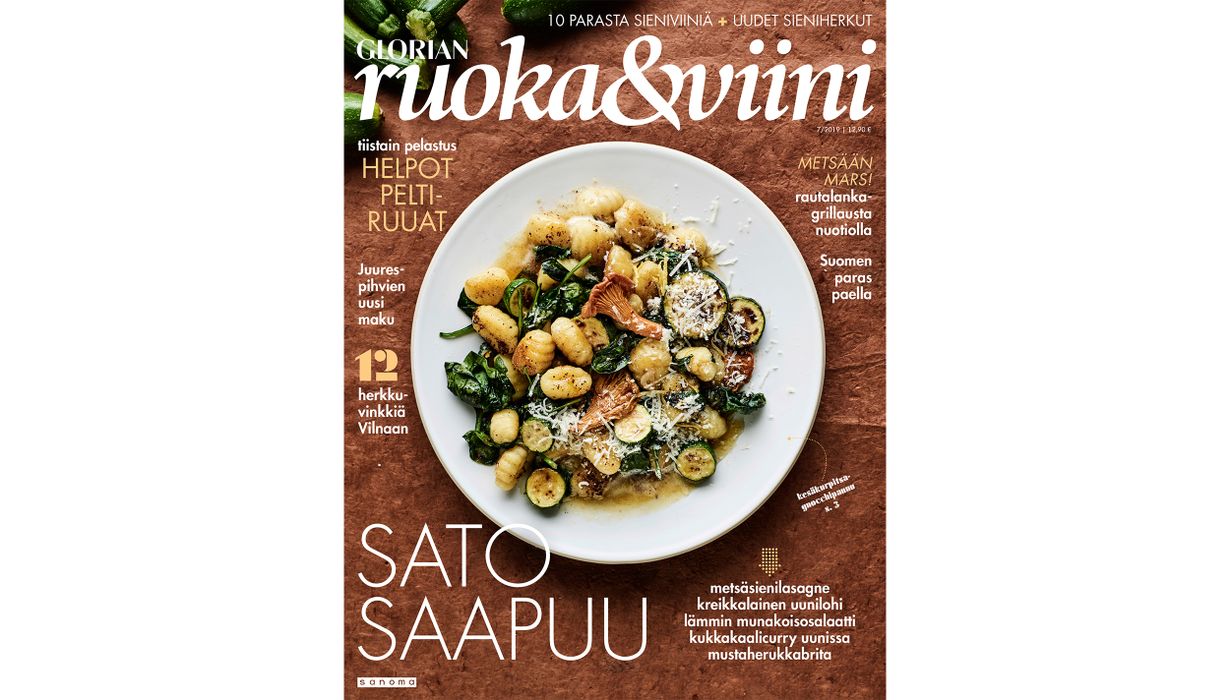 Kokkaaminen on nyt erityisen ihanaa. Kasvikset ovat muhkeimmillaan, maukkaimmillaan ja edullisimmillaan, ja sieniäkin saattaa löytyä. Tuore Glorian ruoka & viini antaa yltäkylläisesti uusia satokauden reseptejä, ideoita ja viinivinkkejä. Kaunis nuotioruuasta kertova juttu sytyttää kokkaus- ja retkeilyhalut, marjaleivonnaiset nostavat veden kielelle ja veikkaamme, että kansikuvan helposta gnocchipannusta tulee uusi luottoreseptisi. Uusi lehti on kaupoissa 15.8.