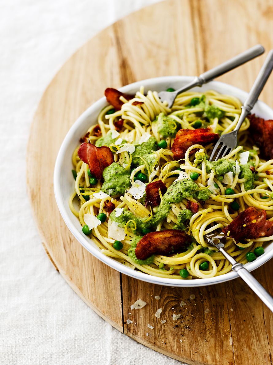 Pakasteherneiden ansiosta hernepestopasta on jo sinällään ruokaisa. Pekonilla on kuitenkin annoksessa erityinen tehtävä.