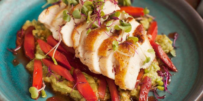 Oletko muussaaja? Kokeile rapeaa broilerinrintaa harissaporkkanoiden ja avokadotahnan kanssa!