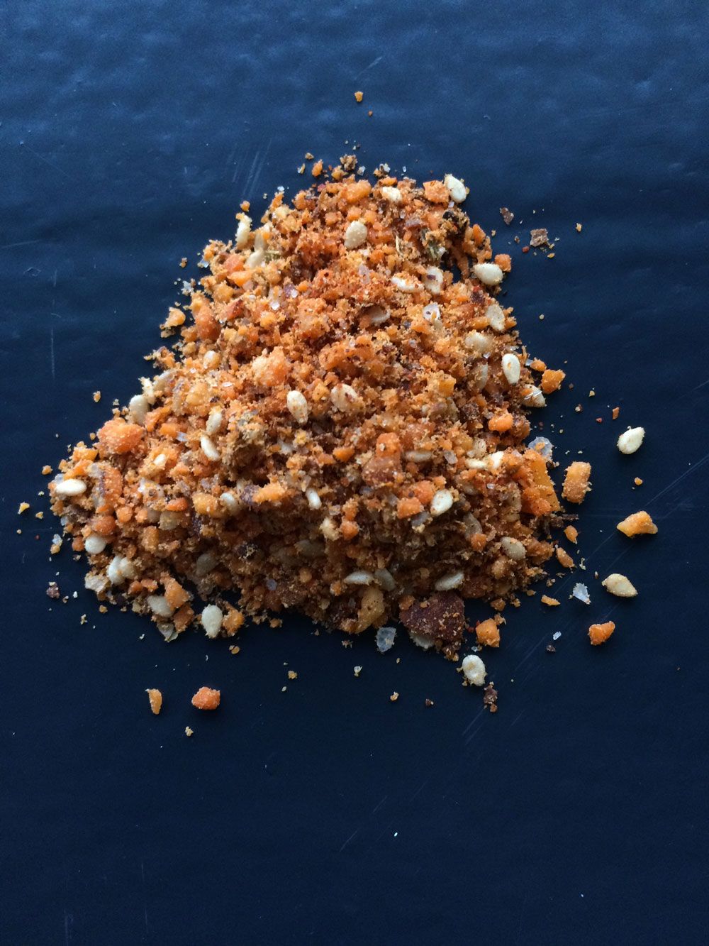 Sitten on vanha ystävä, egyptiläinen, pähkinäinen dukkah. Aiemmin tein dukkahin itse, koska mausteseosta oli hankala löytää kaupasta. Nyt syy on toinen. Kuumassa pannussa paahdettujen pähkinöiden, mantelin, chilin, korianterinsiementen, mustapippurin ja jeeran murskaaminen morttelissa on todellinen tuoksupalkinto. Edellyttäen, että ei säikähdä jeeran tuoksua. Jotkut kuvailevat sitä hieman hikiseksi. Minusta se tuoksuu pikemminkin länsituulelta, auringon kuumentamalta rantahiekalta ja rantapyyhkeeltä. Dukkah-mausteseoksen reseptin löydät täältä.