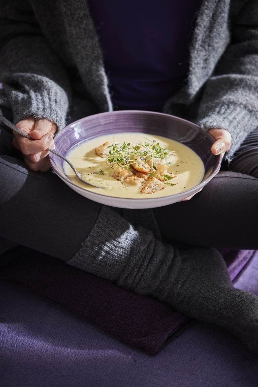Kutsu ystävät kyläilemään rennoin mielin. Kodin ei tarvitse olla tiptop eikä tarjottavia kannata tehdä liian montaa lajia. Lämmittävä keitto ja hyvä leipä riittävät hyvin. Tärkeintä on viettää aikaa saman pöydän äärellä. Purjo-perunasosekeitto on klassikko, joka kannattaa palauttaa mieleen: tyylikäs, herkullinen, riittoisa. Halutessaan keiton voi tehdä jo edellisenä päivänä ja lämmittää tarjolle.