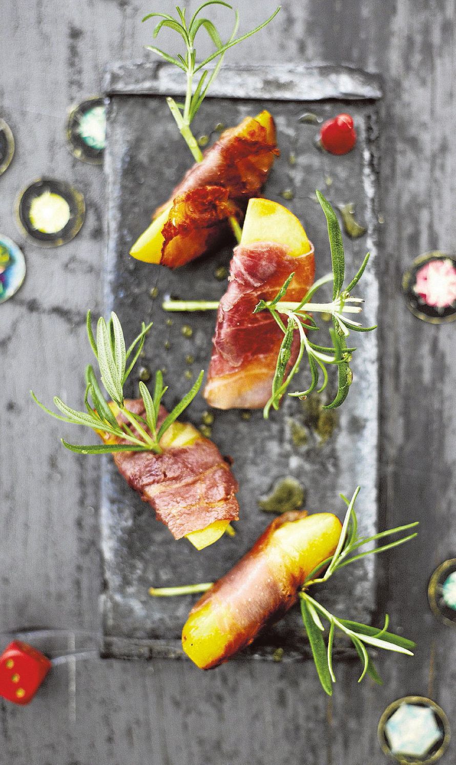 - Persimoni. Kauden himotuin hedelmä kääräistynä ilmakuivattuun kinkkuun on täydellinen pikkujoulupaketti.