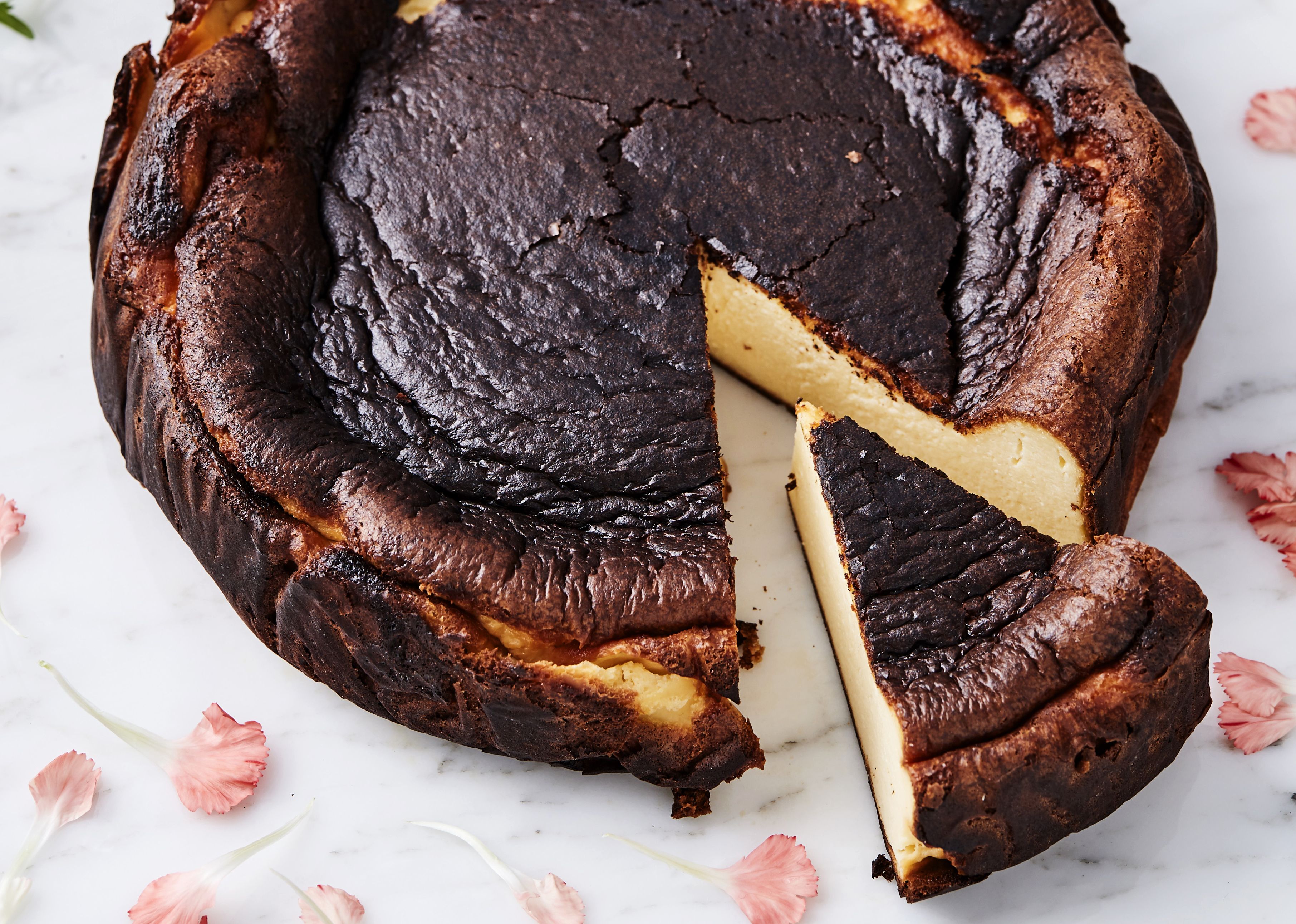 - Baskimaan juustokakku (kuvassa) on niille, jotka eivät välitä rapeasta pohjasta, tai oikestaan pohjasta ensinkään. Kakku on siis täyttä tavaraa, sileän täyteläistä massaa. Pinta saa todella tummua paistettaessa!