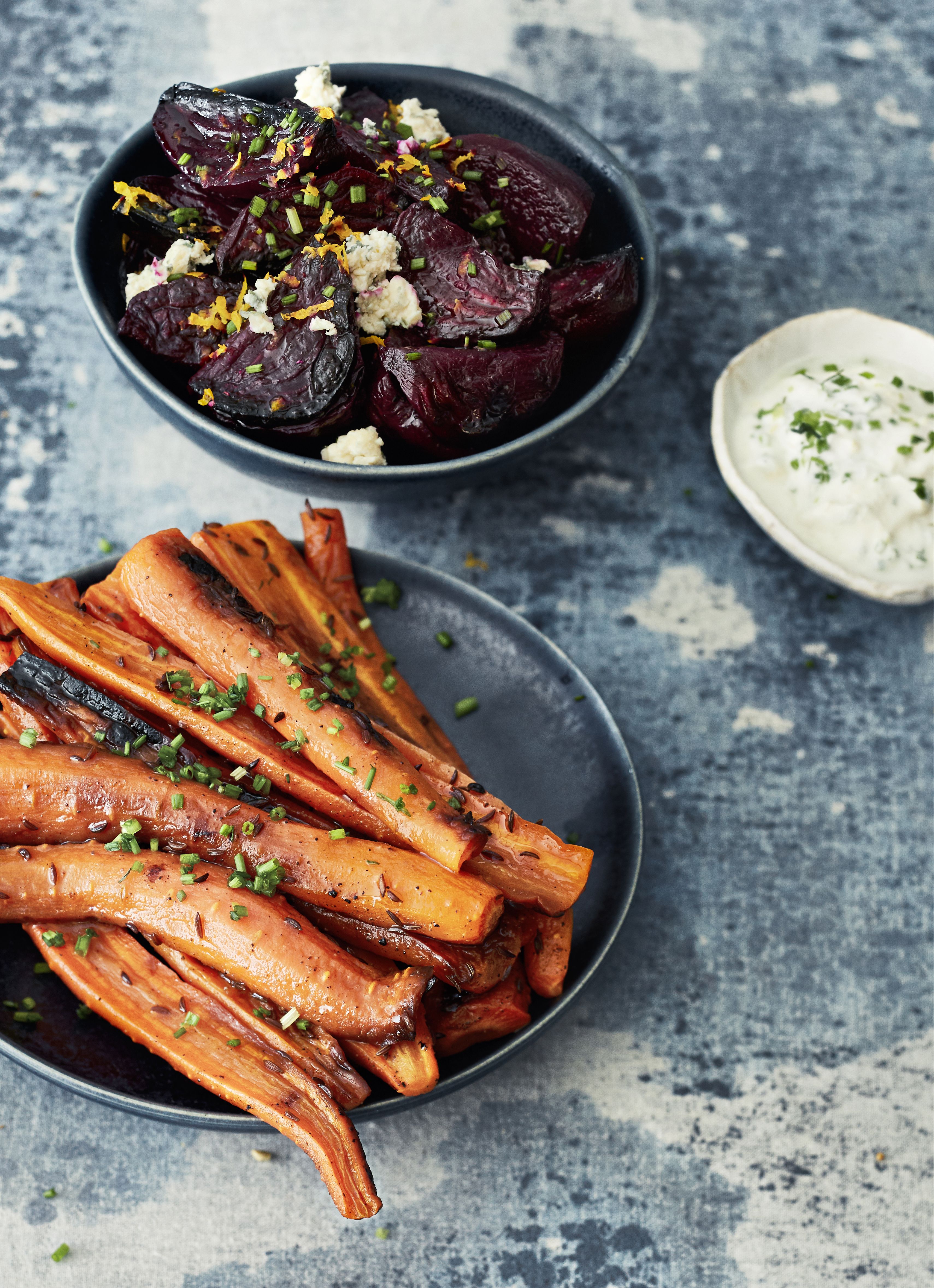 Appelsiinipunajuurten ohjeen löydät täältä, ja kuminaporkkanoiden täältä.