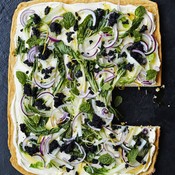 Uunissa paistettava blinipannari on kärytön. Mikä parasta, voit paistaa sen etukäteen, koska ideana on tarjota jättiblini valmiiksi päällystettynä.