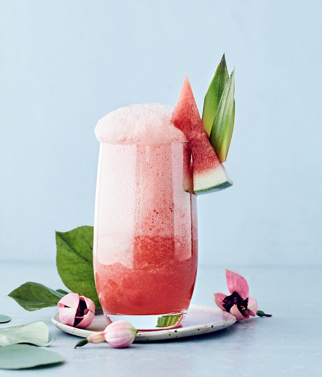 Jos hankit kilon kokoisen minivesimelonin, voit käyttää sen kokonaan. Meloni koverretaan kuorestaan tehosekoittimeen tai monitoimikoneeseen, soseutetaan ja yhdistetään limetin ja kuohuviinin kanssa. Kun kaikki ainekset ovat jääkaappikylmiä, drinkistä tulee ihanan viileä ja raikas alkujuoma juhannusjuhliin.