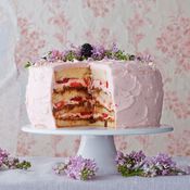 Leipoako raparperipiirakka vai mansikkakakku? Tämä juhannuskakku ratkaisee pulman. Pohjana on nimittäin mehevä raparperipiirakka, jonka päälle levitetään tuorejuustotäyte ja viipaloidut mansikat.