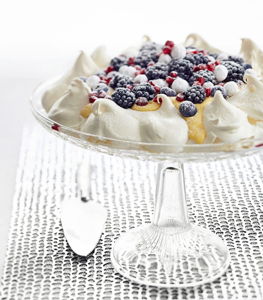 Kaikkien makeanhimoa ei kuitenkaan suklaalla sammuteta. Kakkosjälkkärivaihtoehdoksi voit valmistaa unelmankevyen pavlovan, joka on täytetty sitruunatahnalla ja kevään marjoilla. Muista koota pavlova vasta ennen tarjoilua - pohjan ja tahnan voit toki valmistaa etukäteen.