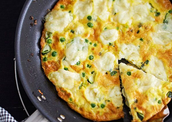 Mikäli salaatti ei maistu ja piirakka vaikuttaa raskaalta, frittata on täydellinen ratkaisu suolaisen tarjottavan paikalle. Tämä frittata täyttyy keväisistä mauista: seoksessa on herneitä, kevätsipulia, kesäkurpitsaa ja vuohenjuustoa. Frittatan voit tarjoilla myös kylmänä, mikä tekee siitä helpon tarjottavan buffetpöydässä.