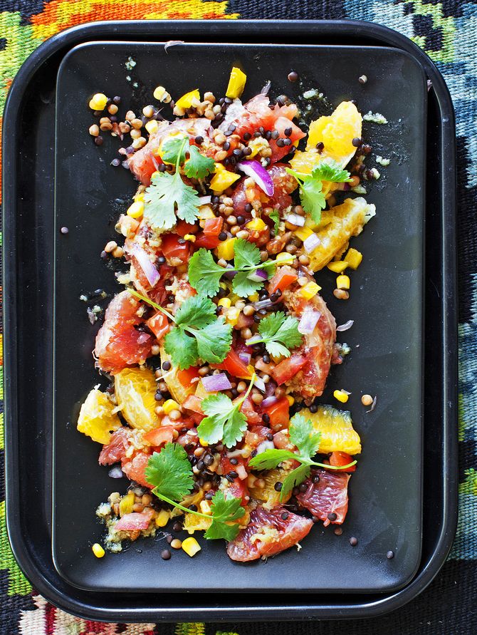 Tästä salaatista kasvisyöjät riemastuvat. Belugalinsseillä ryyditetty salaatti vie nälän ja maistuu sellaisenaan tai maalaisleivän kaverina.