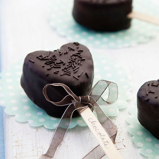 Kun teet sydämenmuotoiset leivokset jätskitikkuihin ja koristelet ne vielä silkkinauhoilla, ei lahjansaajan sydän voi olla sulamatta. Keitä hyvä kahvi ja ojenna suklaasydän! Sydämellisten mokka-suklaaleivosten ohjeen löydät täältä. Samalla ohjeella voit leipoa myös kakun, jos sinulla on isompi ystäväpiiri hemmoteltavana.