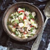Minkä kanssa? Hieno puhdaspiirteisen hedelmäinen viini sopii niin graavikalalle kuin cevichellekin.