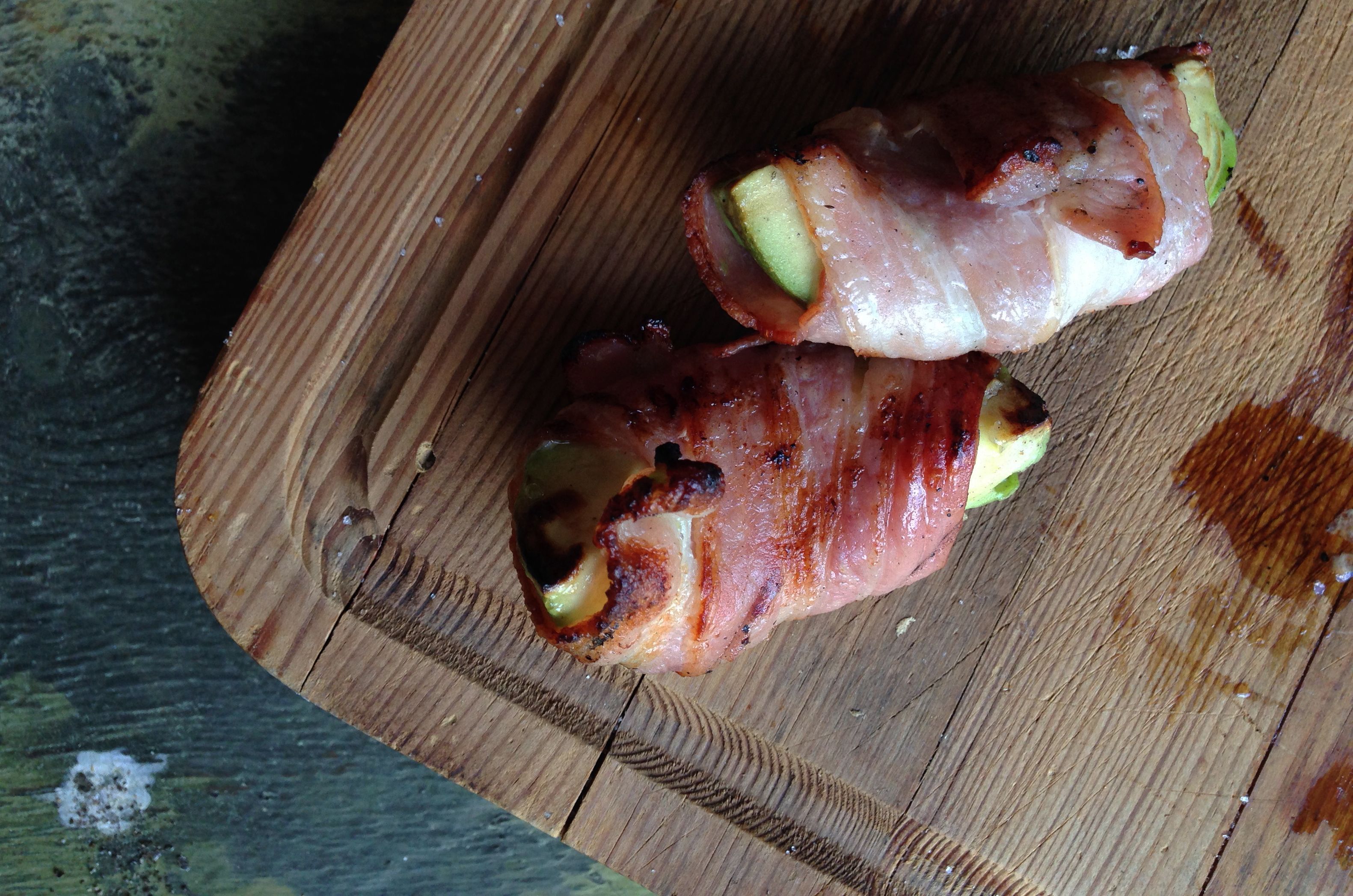 Avokado leikataan neljäsosiksi, niiden pintaan sipaistaan chilikastiketta ja lopuksi kääräistään pekoniin. Grillistä tulessaan maku on loistava ja rakenne ihana: päältä rapea ja sisältä pehmeä.