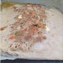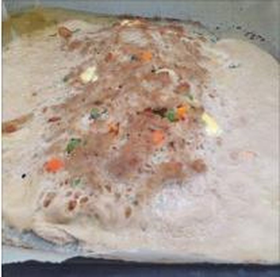 Epäilyttävän näköinen vaahto on munanestettä eli vettä ja kananmunaa. Vielä epäilyttävämmät täplät taas ovat sulatejuustoa, joiden tarkoitus oli ruoanlaittajan mukaan "tuoda murekkeeseen pehmeyttä".