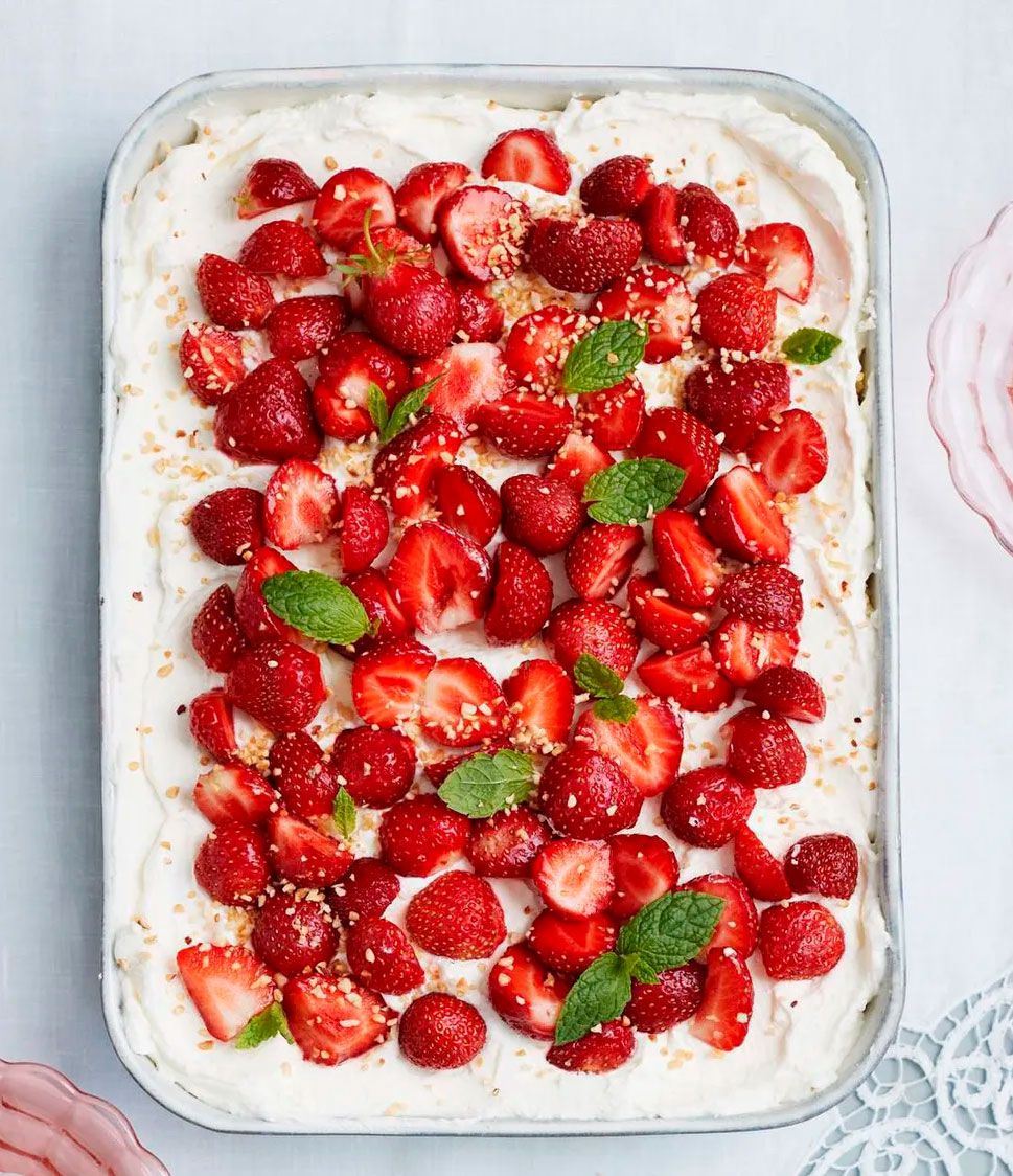 Helpoista helpoin kesäkakku valmistetaan suoraan vuokaan! Mansikkavuokakakku on nopea, helppo ja näyttävä ja mikä parasta, herkku on vielä gluteeniton.