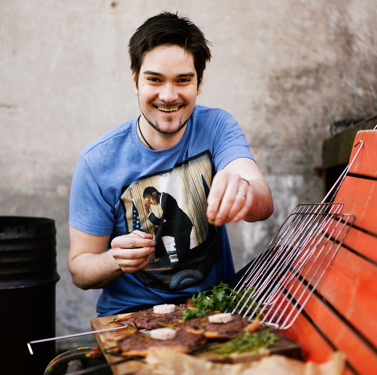 ”Broileria grillaan jokaiselle puolikkaan ja entrecôtea 200 grammaa. Possun kylkiriviä menee kevyesti 400 grammaa per naama. Ruokaa pitää olla riittävästi, inhoan pieniä annoksia.”