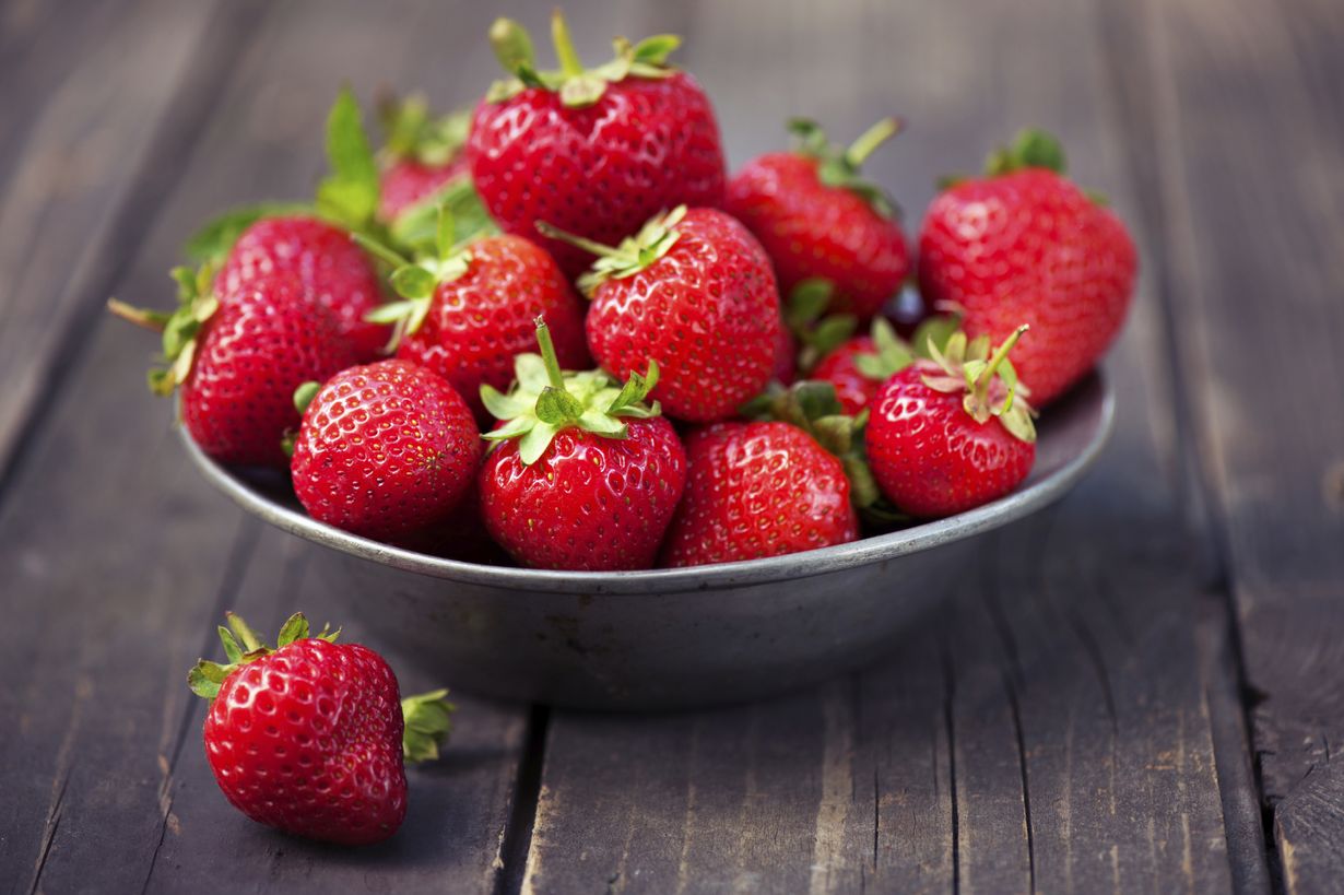 Tuore, kypsä mansikka on kiiltävä ja kiinteä. Kanta irtoaa helposti. Ja hei, meillä on kikka, jolla varmistat marjojen tuoreuden. Kun ostat ison satsin mansikoita, heilauta laatikkoa varovasti kulmasta; tuoreet mansikat pomppaavat pirteinä ja terhakkaina yksittäisinä marjoina ylöspäin. Jos heilautus saa marjat liikkumaan yhtenä raskaana rintamana, siirry seuraavan kauppiaan luokse.