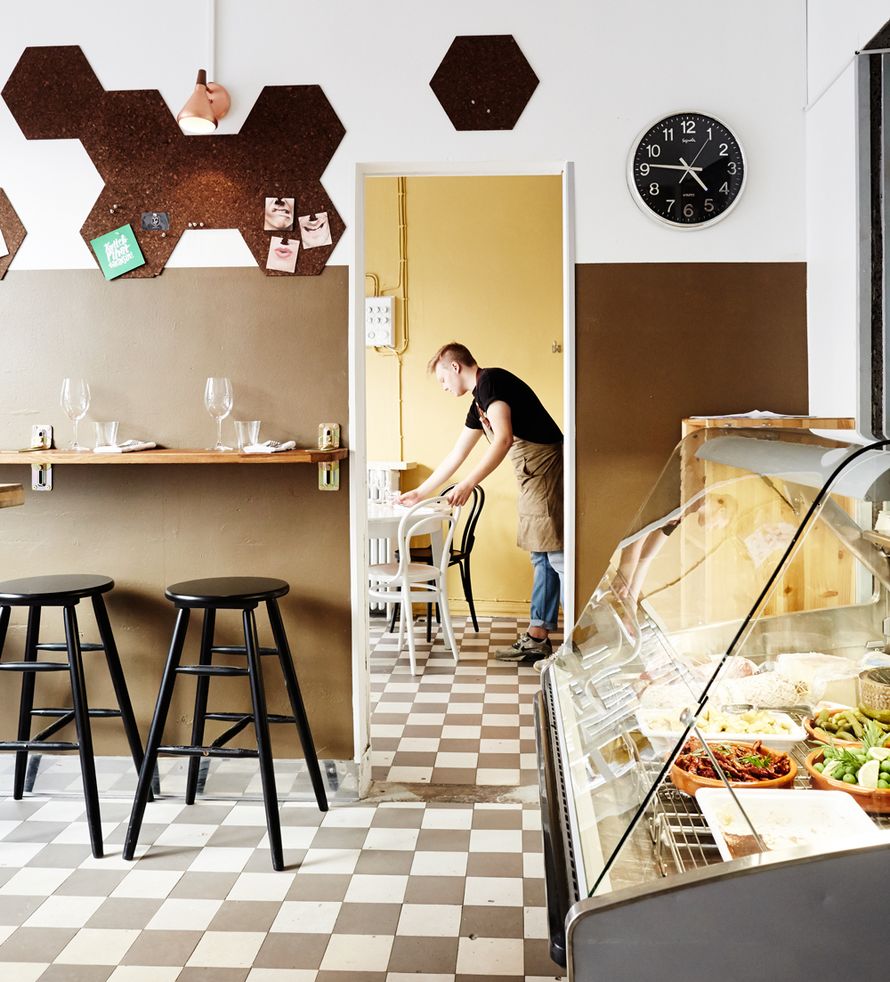MIKSI KÄYN ”Olen pitkään toivonut kulmillemme kotoisaa kortteliravintolaa, sellaista matalan kynnyksen paikkaa, jossa voisin piipahtaa lasillisella. Mutta ennen kaikkea sieltä pitäisi saada hyvää ruokaa. Toiveeni toteutui, kun Punavuoreen avattiin loppukeväästä Workshop Delicatessen. Ravintolan päivittäin muokkautuvalla listalla on tuttuja makuja Välimereltä mutta uudella tavalla väännettyinä. Pikkunälkään toimii savustettu mozzarella tai pikkelöidyllä retiisillä höystetty kananmaksatoast. Pääruuista löysin hauskan yllätyksen, kaakaolla maustetun possunposken. Paikka on nimensä mukaisesti deli, joten kylmätiskin herkullisia juustoja ja leikkeleitä paketoidaan myös kotiin vietäväksi.”
