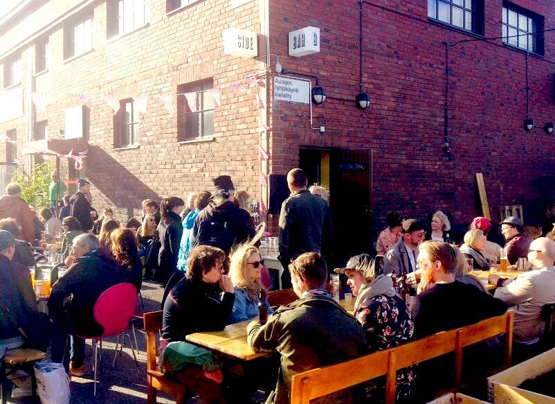 MIKSI KÄYN ”Tukkutorin B-Side Bar on oikeastaan aika ruma baari. Penkit on rakennettu eurolavoista ja pöydät rahdattu varmaan kierrätyskeskuksesta. Mutta kun aurinko porottaa (terassi on Helsingin aurinkoisimpia) ja musiikki soi, olo on kuin Berliinin Kreuzbergissa, ja ruma muuttuu kauniiksi. Terassille voi tilata ruokaa seinän takaa B-Smokerysta. Otan aina seitanburgerin, sillä se on paras maistamani vegeburgeri. Täytteitä on niin reilusti, että lisukkeita ei tarvita. Burgerin jälkeen voi jatkaa ruokalevolle kutsuville riippumatoille terassin eteen.”