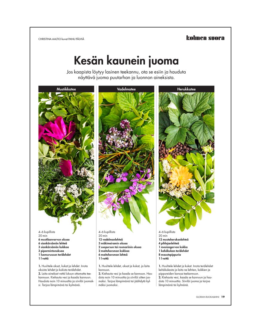 Glorian ruoka & viinin numerossa 6/2020 julkaistussa vadelmateen reseptissä (s. 19) on virhe. Reseptin pohjana on toimittajan suvussa käytössä ollut rohtoteen resepti. Teen mausteena käytetyn rosmariinin vaihtoehdoksi on annettu suopursu. Suopursua on käytetty ennen haudukkeissa ja esimerkiksi oluen mausteena. Nykyisin kasvi luokitellaan myrkylliseksi, ja sen jatkuvasta käytöstä on haittaa. Pahoittelemme virhettä.