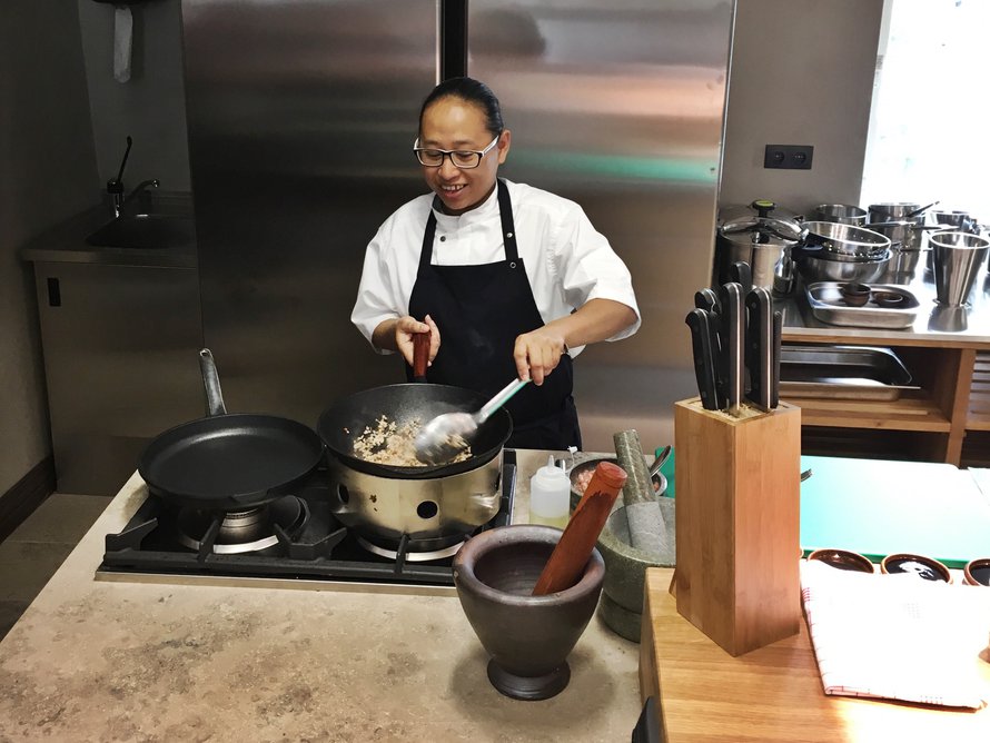 – Kurssilla opetellaan tekemään tavallisia ruokia, joita ihmiset tekevät Thaimaassa kotona tai joita syödään kaduilla, kertoo pääkeittiömestari Pensiri Pattanaechaeng (kuvassa).