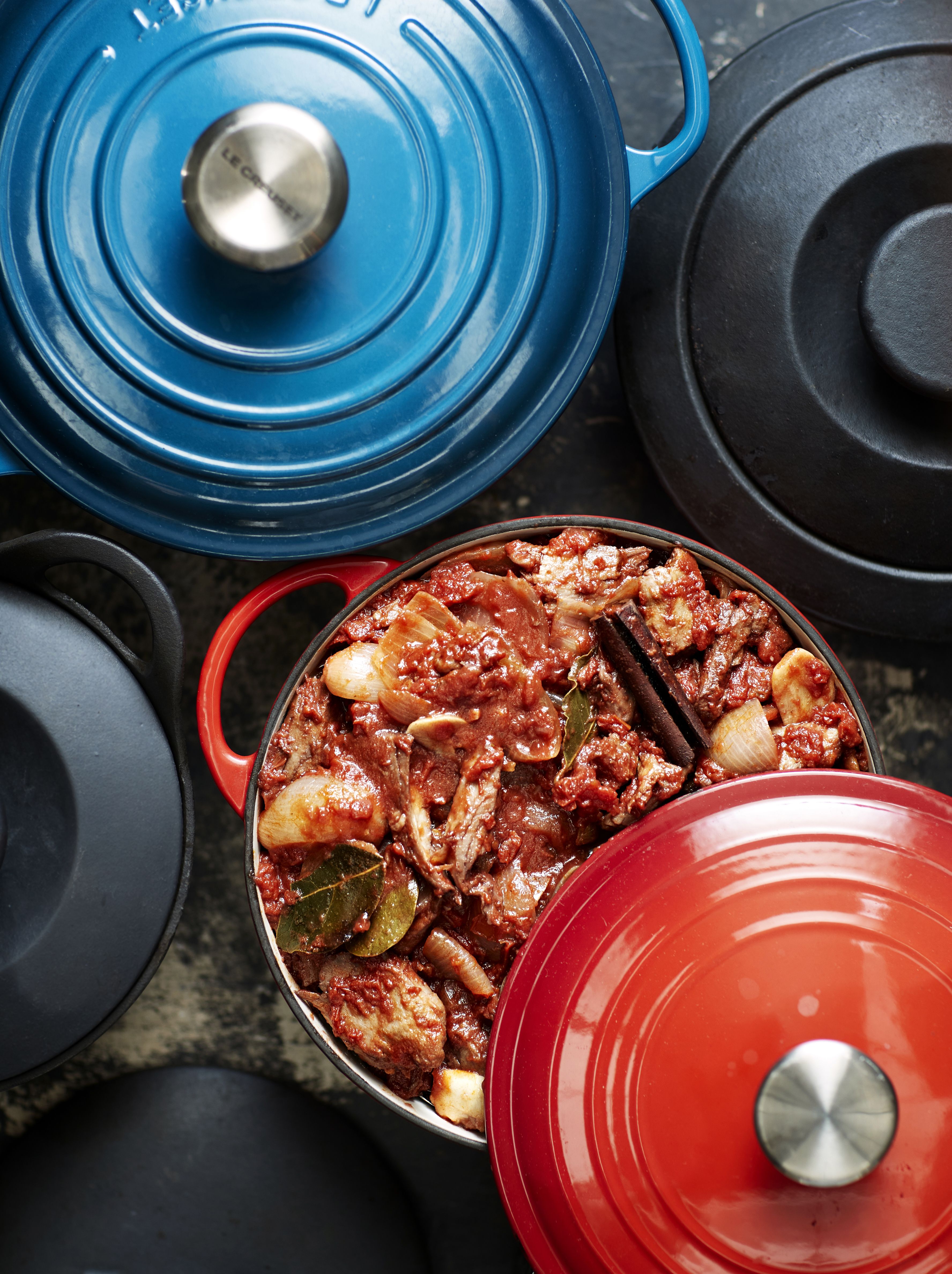 Mausteinen stifado kypsennetään loppuun uunissa, jossa se muhii täyteläiseksi.