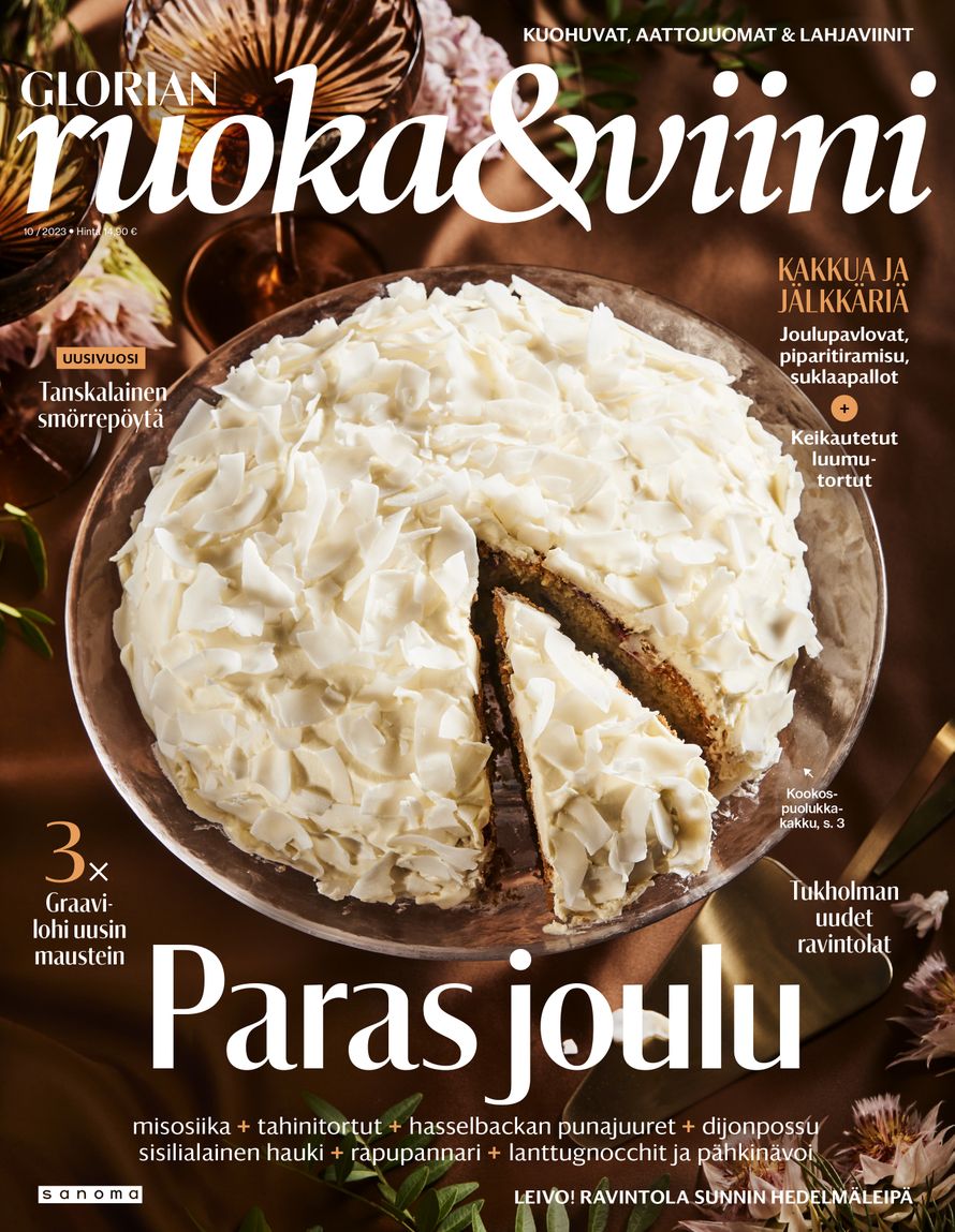 Uusi Glorian ruoka & viini on lastattu jouluisilla ideoilla. Lehdestä löytyy kaksi erilaista, ihanaa joulumenua. Valmista aattobuffaan uudet raikkaat herkut misosiiasta porocarpaccioon ja piparitiramisuun. Tai kutsu ystävät kokkaamaan rento illallinen, joka alkaa lanttugnoccheilla ja päättyy jouluiseen pavlovaan. Kumpikin menu on varustettu viinisuosituksilla.