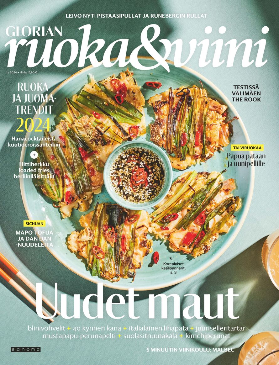Hyvää uutta ruokavuotta! Vuoden 2024 ensimmäisessä Glorian ruoka & viinissä pureudutaan ruoka- ja juomatrendeihin, maistellaan naturalviinejä ja kokataan sieluun asti lämmittäviä talviruokia.