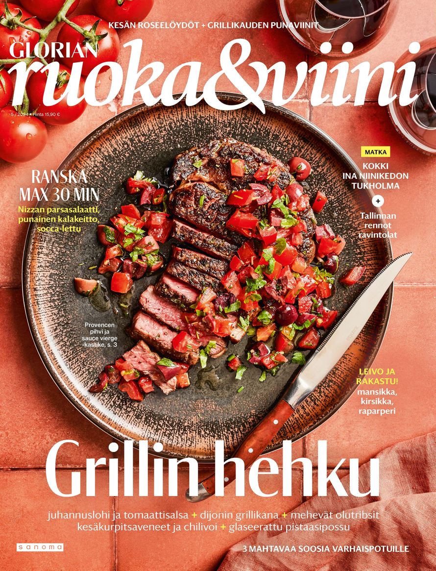 Provencen grillipihvi ja sauce vierge, Dijonin grillikana sekä kesäkurpitsaveneet ja chilivoi. Glorian ruoka & viini tuo grillikesään ripauksen Etelä-Ranskan hehkua!