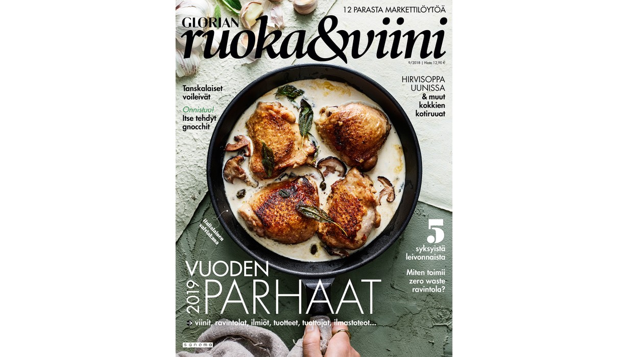 Mitkä ovat Suomen parhaat ravintolat juuri nyt? Mitkä markettituotteet nousevat yli muiden, ja missä viineissä on paras hinta-laatusuhde? Entä mitkä ovat kotimaan parhaat kohteet ruokamatkailijalle? Glorian ruoka & viinin tuore numero kertoo näihin vastaukset. Lisäksi lehti tarjoaa runsaan kattauksen ajankohtaisia reseptejä, kuten ohjeen uunissa valmistuvaan hirvisoppaan sekä italialaisiin perunagnoccheihin, joiden tekeminen näytetään vaihe vaiheelta. Lehti on kaupoissa 17.10.