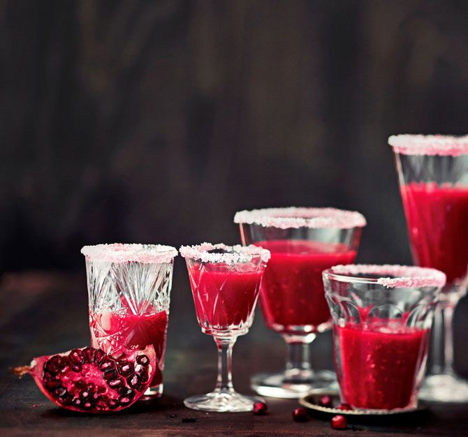 Granaattiomena ja vadelmat saavat margaritan punastumaan ja maistumaan niin hyvältä, että juoma kelpaa vaikka jälkiruoaksi.