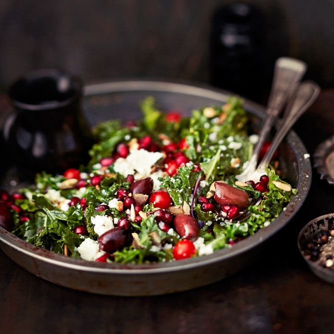 Lämmin lehtikaali-granaattiomenasalaatti löytyy täältä.