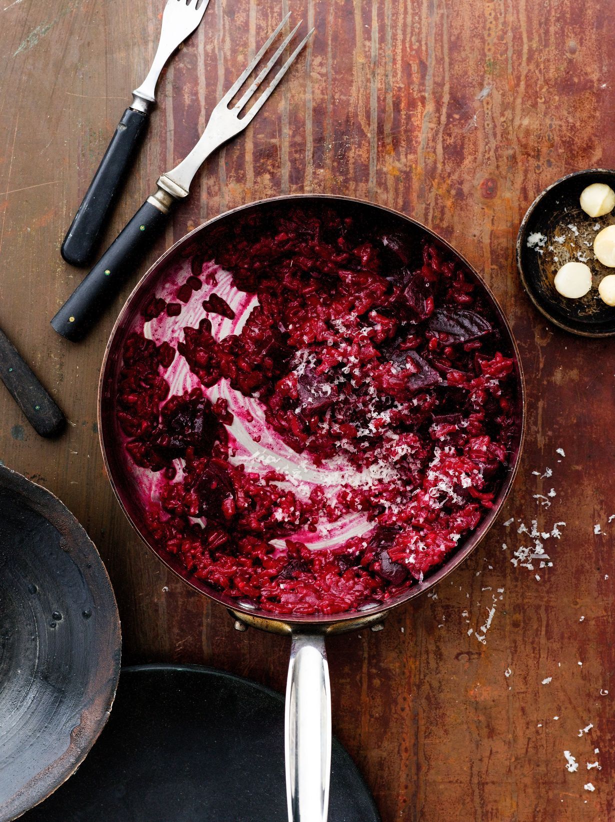 Punajuurimehuun tehty taikina ei ole vegepizzan ainut valttikortti: myös täytteet maistuvat mahtavilta.