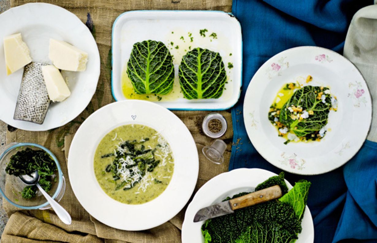 Kaikkea muuta kuin perinteiset kääryleet: savoijinkaalin lehteen kääräistään nimittäin perunahelmiä ja vuohenjuustoa.