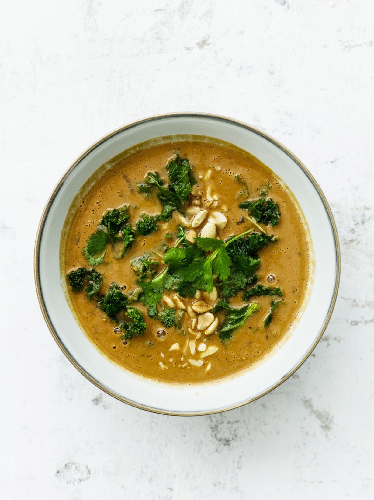 Täyttävä maapähkinävoikeitto on nopea ja vaivaton vegemuunnelma länsiafrikkalaisesta lohturuokaklassikosta.