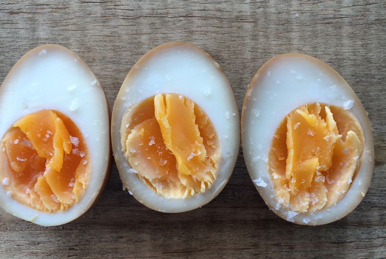 Superhitiksi nousseet marinoidut munat ovat yksinkertaisuudessaan nerokkaita. Keitetty kananmuna saa maukkaan pinnan, kun sen marinoi suolaisessa soijaliemessä. Paras lopputulos tulee, kun munat saavat marinoitua yön yli. Aineksia on vähän, joten niissä kannattaa satsata laatuun: käytä tuoreita (luomu)munia, laadukasta soijaa ja sherryviinietikkaa. Sherryviinietikalla lopputuloksesta tulee kaikista maukkain.