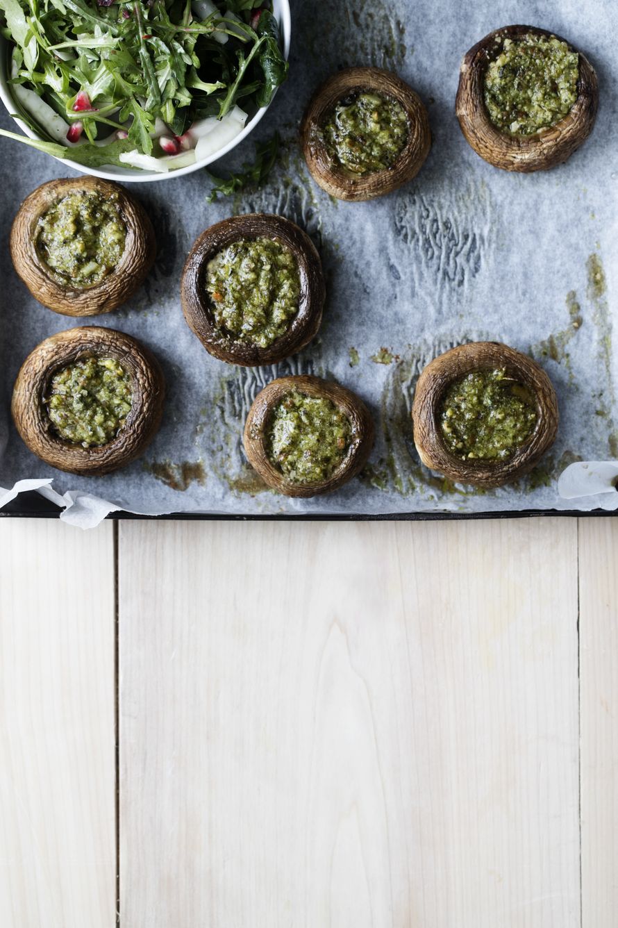 Pudota sienen sisään kuutioi home- tai pippurijuustoa ja grillissä tirisee klassikko. Meheväksi sieni muuttuu, kun pyöräytät maustamattoman tuorejuustoston joukkoon satokauden mukaan silputtuja yrttejä. Ensimmäiset sienet kylpevät ruohosipulissa. Keskikesää kohden makuina on basilikaa, timjamia tai salviaa.