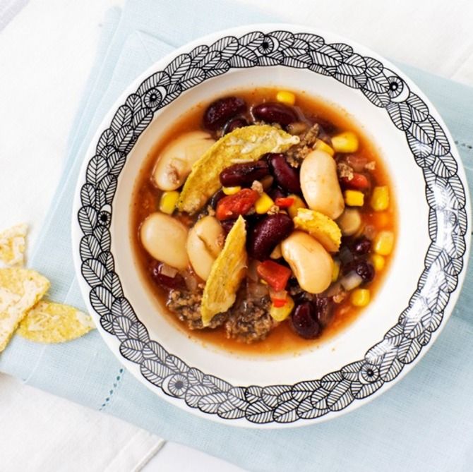 Kun tekee mieli todella proteiinipitoista ruokaa, tässä on ohje. Jauhelihakeiton meksikolaiseen versioon lisätään pari purkkia papuja. Keitto syntyy töiden jälkeen pikapikaa, sillä maun tuo soppaan kumottava valmis tacokastike. Ja jos vielä haluat oikaista, voit jättää uunissa juustolla kuorrutetut nachot pois.