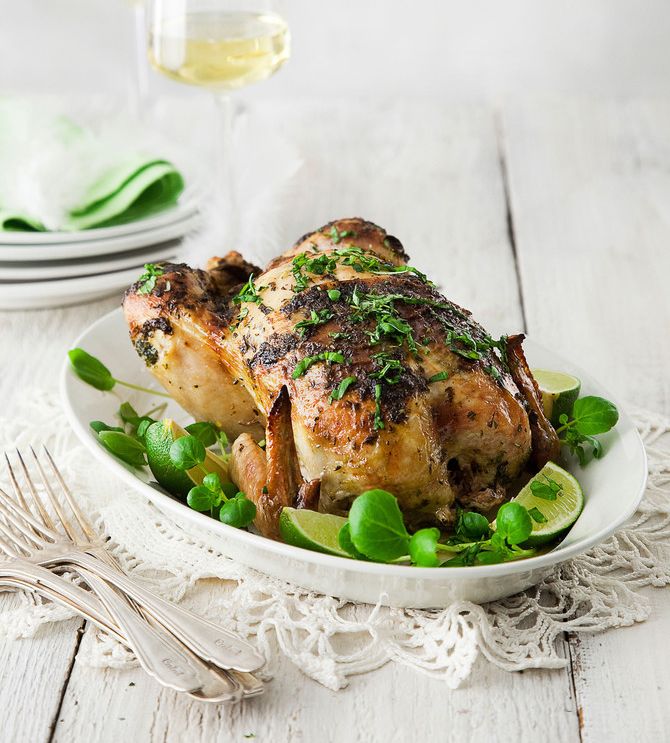 Broileri mielletään usein arkiruoaksi, sillä se soveltuu moneen ja on helppo valmistaa. Broilerista saa kuitenkin näyttävänkin viikonloppuruoan. Sen sijaan, että ostaisit foliopussissa seisoneen valmiin broilerin kaupan palvelutiskiltä, paista se itse. Kokonainen maustamaton broileri on helppo maustaa ja täyttää. Ja saat tarjolle uunituoretta, mehevää kanaa, jossa on rapea kuori.