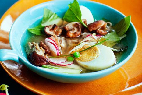 Helppo nuudelisoppa höystetään aasialaisilla mausteilla, kuten misolla, kalakastikkeella ja chilillä. Kasviksia voit käyttää mielesi mukaan: makumaailmaan sopivat hyvin esimerkiksi siitakesienet ja paksoi, mutta kotimaiset sienet ja kiinankaali ajavat tarvittaessa saman asian.