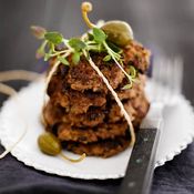 Kilo pihvikarjan jauhelihaa, olutta, valkosipulia ja worcesterkastiketta. Juhlien takuuvarmat hittilihapullat syntyvät tällä ohjeella. Maku ei ole ainoa syy, joka saa lihapullat häviämään pelliltä: massaan sekoitetut pankojauhot antavat lihapulliin kaivattua ilmavuutta samalla kun ne sitovat aineksia yhteen. Kun lihapullia on reilusti, kätevintä on antaa uunin hoitaa niiden kypsentäminen. Jos haluat, voit kypsentää satsin hyvissä ajoin etukäteen ja pyöräyttää valmiit pullat pannun kautta tarjolle.
