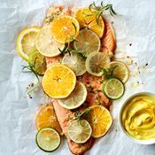 Loistava makupari syntyy lohesta ja sitruksista. Viipaloi fileen pintaan sitruunaa, limettiä ja veriappelsiinia ja raasta mauksi tuoretta inkivääriä. Uuni hoitaa loput!