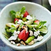Tässä näyttävässä salaatissa parsa on suikaloitu kuorimaveitsellä ohuiksi suikaleiksi ja pyöritelty sekaisin tattarin ja kananmunakastikkeen kanssa. Parsanauhoja kannattaa uittaa hetki jääkylmässä vedessä, koska silloin niistä tulee ihanan rapsakoita.