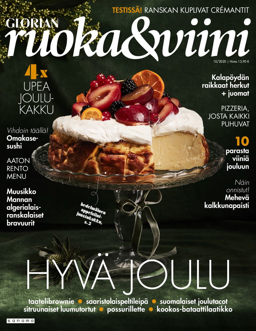 Lehdestä löytyy myös vinkkejä ruokalahjoihin, jotka vievät Italian pastataivaaseen, Suomen metsiin, Japanin katukeittiöihin ja Ranskan maaseudulle. Viinitestissä ovat tällä kertaa crémantit eli kohtuuhintaiset vaihtoehdot samppanjalle. Lehti on kaupoissa nyt!